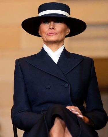 Melania’s choice of navy blue carried significant meaning. This bold yet classic color symbolizes authority, confidence, and stability—qualities essential for the momentous occasion. The tailored silhouette added authority to her elegance, drawing comparisons to other iconic First Ladies while charting her own path.